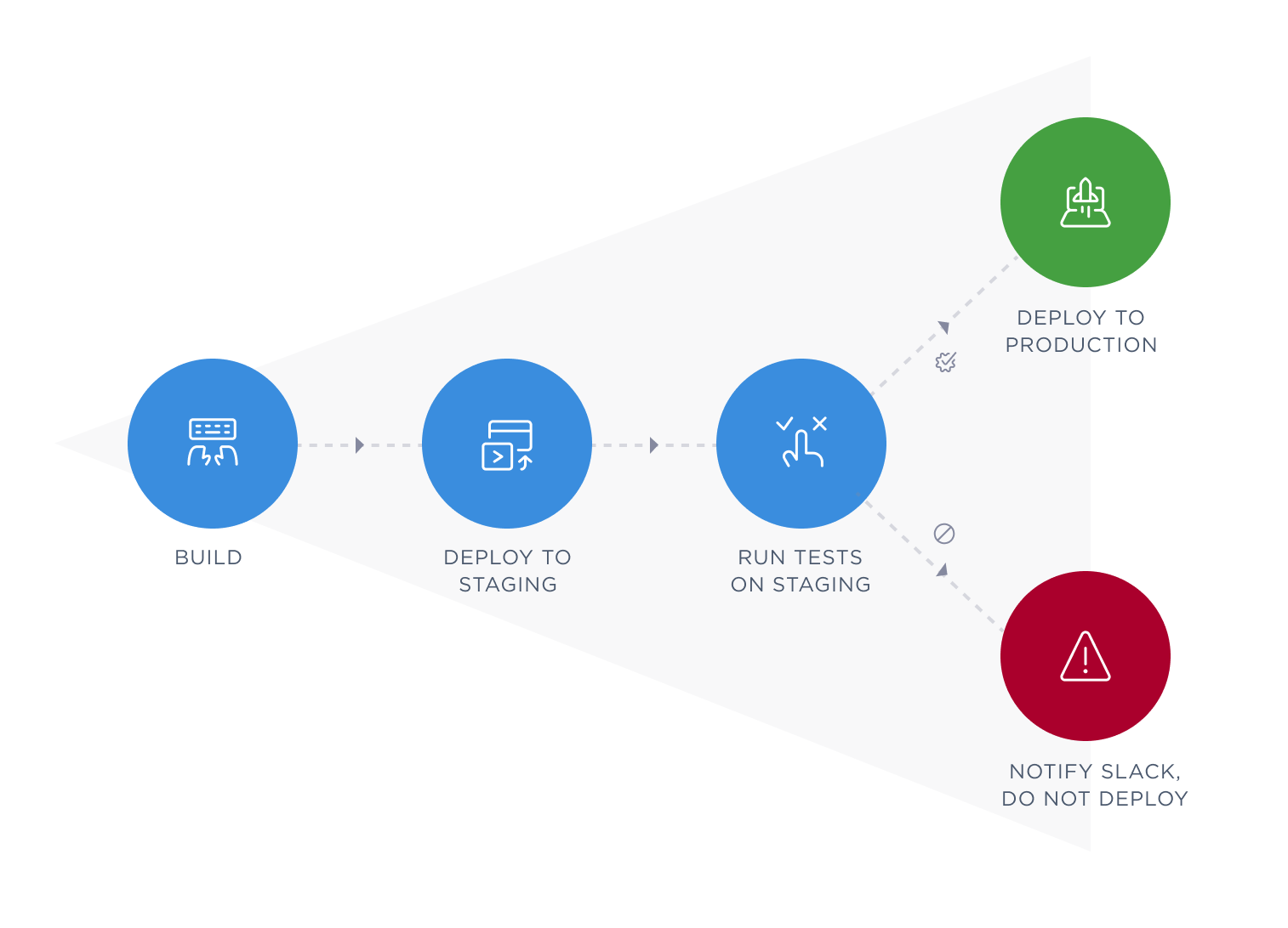 Our documentation site has a staging instance for development and testing and a production Instance — the live site if all tests are green. It works with continuous integration and continuous deployment: it automatically runs tests, deploys to staging and then to production. Once done, it sends us a Slack notification. To support a small footprint deployment process, we use an asynchronous event-driven JavaScript runtime, Node.js.